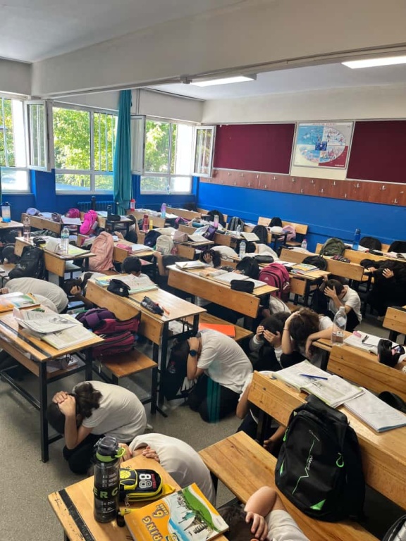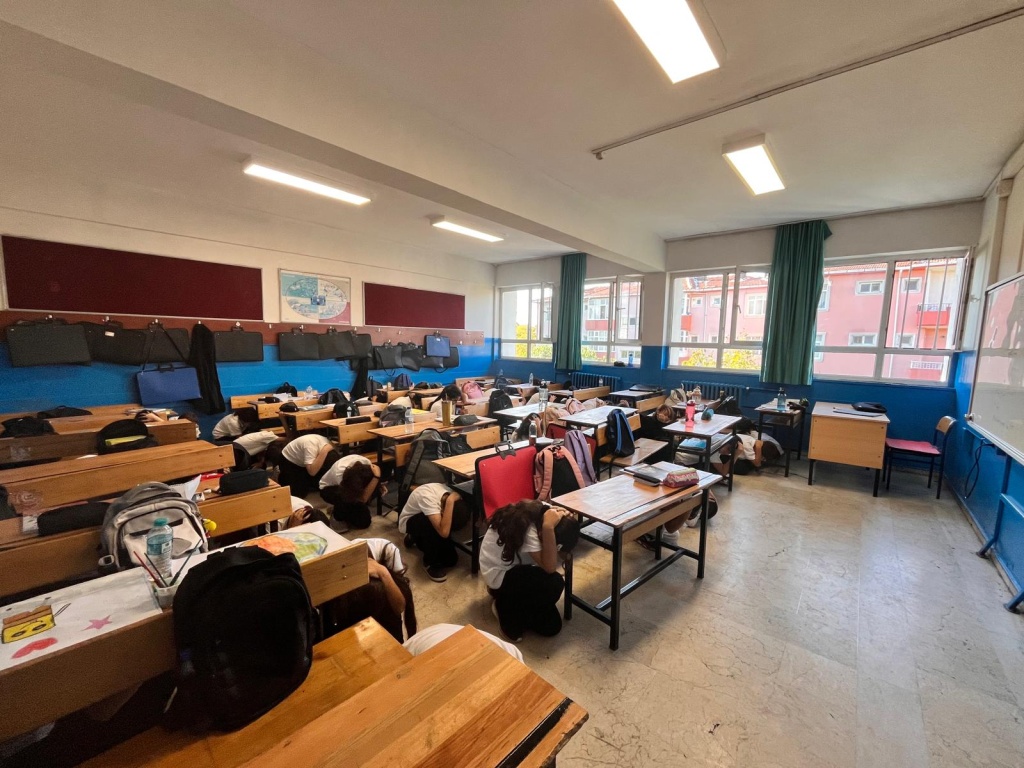 Herhangi bir afet durumunda neler yapılması gerektiği konusunda, öğrencilerimizin bilinç kazanması ve acil tahliye planımız doğrultusunda en hızlı şekilde binayı terk ederek, acil toplanma alanında toplanmalarını sağlamak için okulumuzda deprem tatbikatı yaptık. Okulumuzun tüm alanlarında çalan acil durum zil sesi ile “Çök, Kapan, Tutun” hareketi yapılarak zil sesinin bitmesi beklendi. Zil sesinin bitmesinin ardından yapılan duyuruyla öğrencilerimiz, öğretmenlerinin yönlendirmeleriyle sıra halinde bulundukları alanlardaki tahliye planını izleyerek, binayı terk edip toplanma alanlarına ulaştı. Bina tahliye tatbikatında, öğrencilerimiz yaklaşık 4 dakikada, öğretmenleri ile birlikte bina tahliyesini tamamladı.